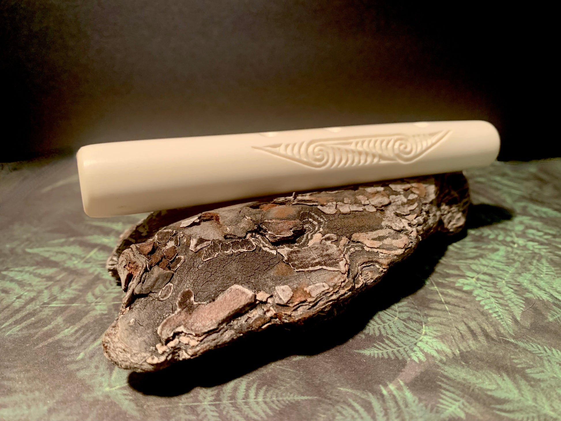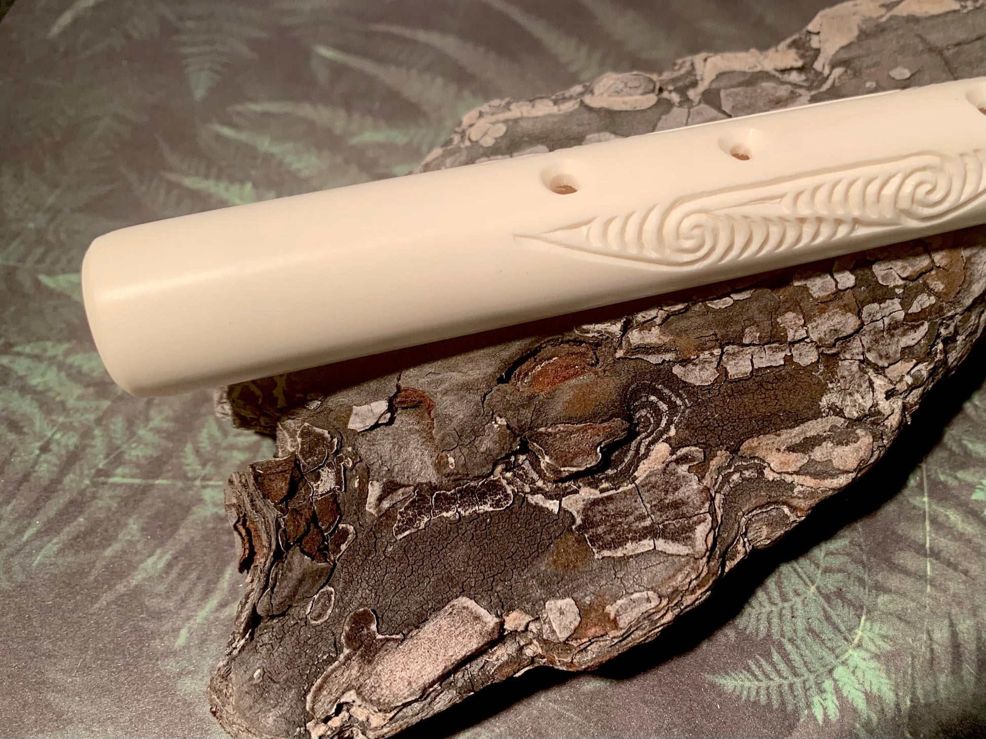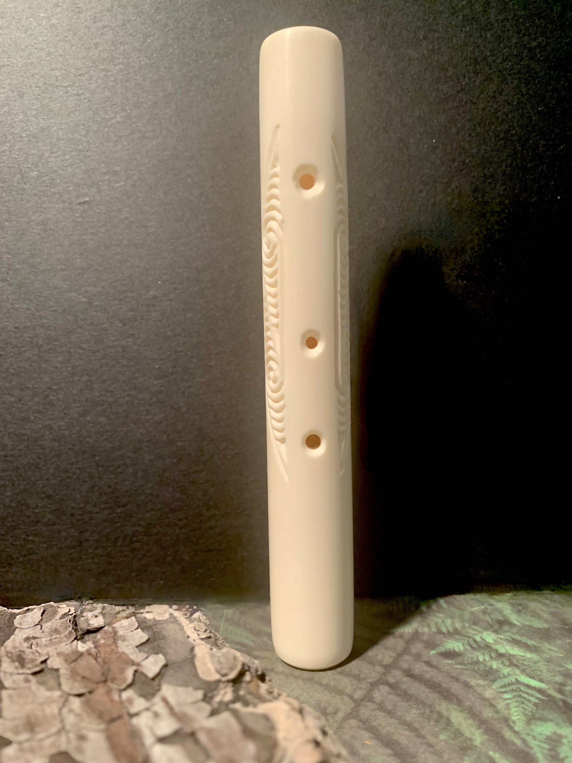 Kōauau traditionally were made from various woods, kelp, albatross wing bones, human bones and probably moa bones, and ranging in length from about 10cm to 40cm. They commonly have three finger-holes, known as wenewene.