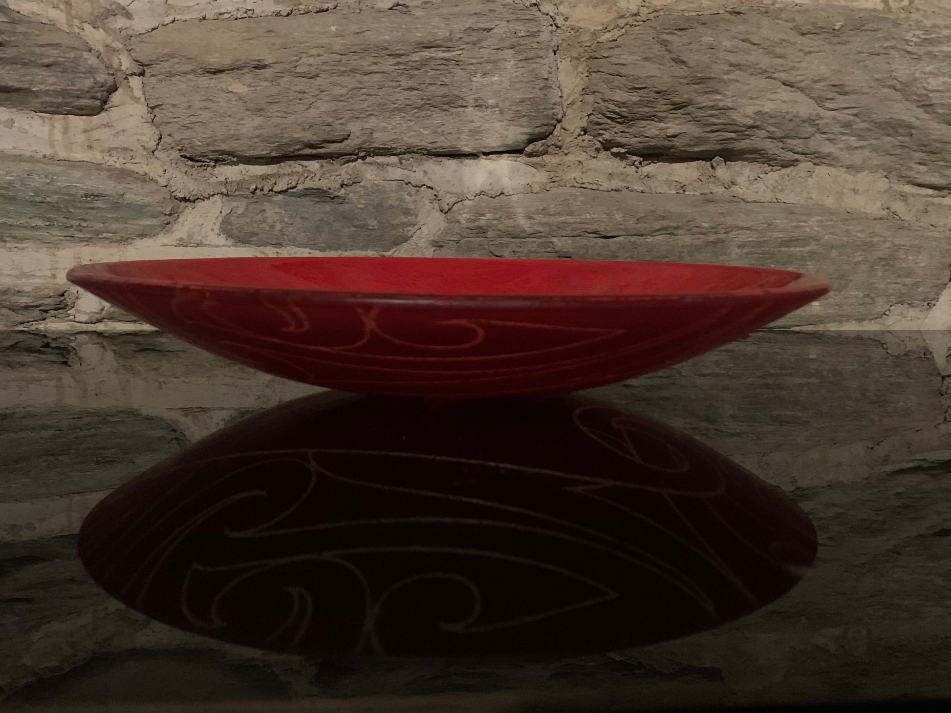 Fused Glass Bowl by Maori Boy - Ngaru (wave) Design (red) 32cm